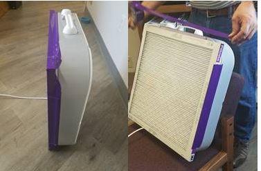 Seriously, does it work? No joke! Here is a graph of the air quality in City Hall from our indoor Purple Air sensor before and after a unit was installed in our lobby. It really works!